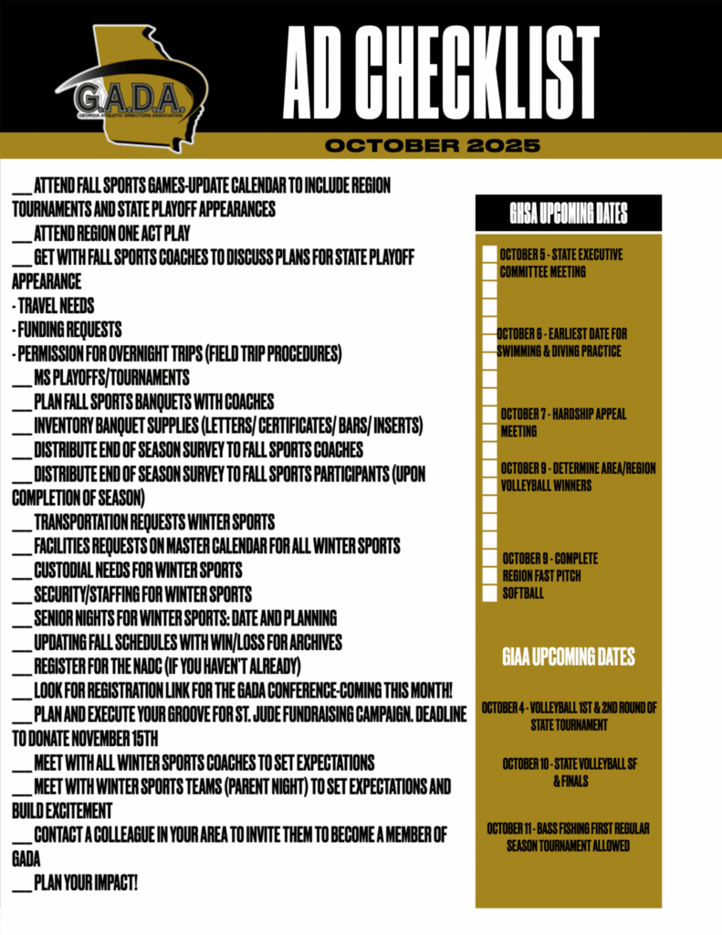 October GADA Athletic Director Checklist